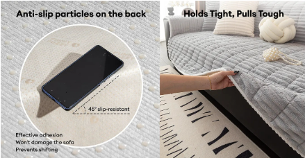 Special anti-slip particles keep the cover firmly in place without damaging the sofa or shifting during use.